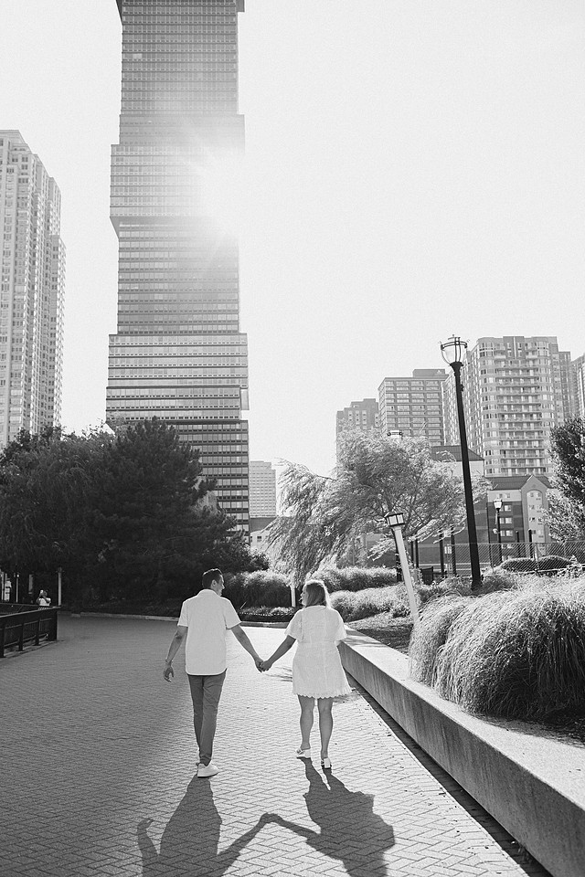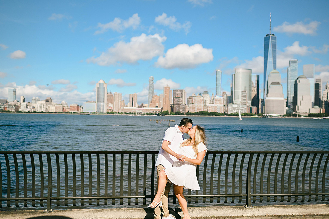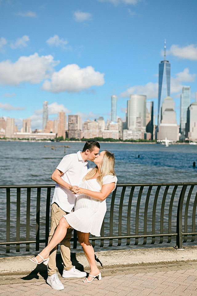 Cody proposed to Jessalynn on the family trip to LBI last summer. Every summer, Cody's family rents a house in Surf City, and this has been the family tradition for the last 30 years. Cody and Jessalynn went to grab a drink and went for a walk on the beach, at which point Cody asked Jessalynn to marry him. She of course said yes! When they got back to the house, Jessalynn's whole family was there to surprise her and celebrate. Enjoy their beautiful, summer, Jersey City engagement session!