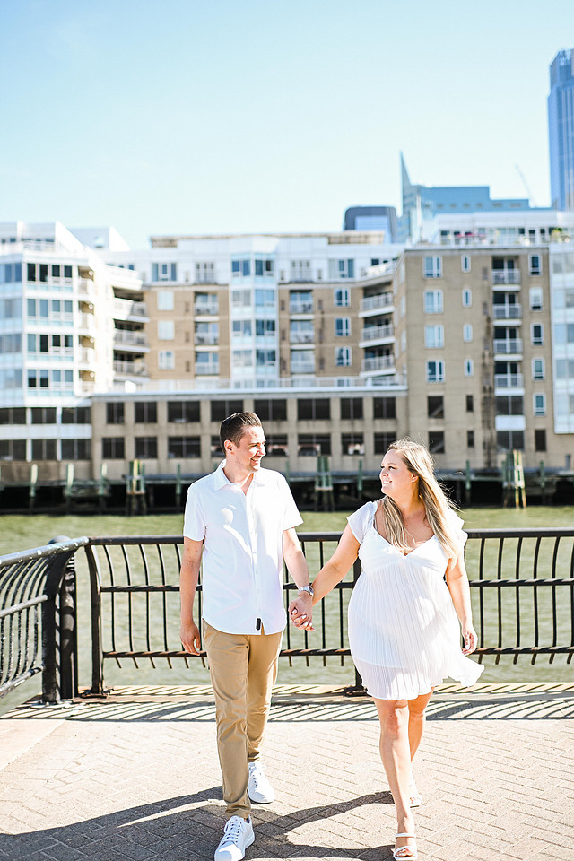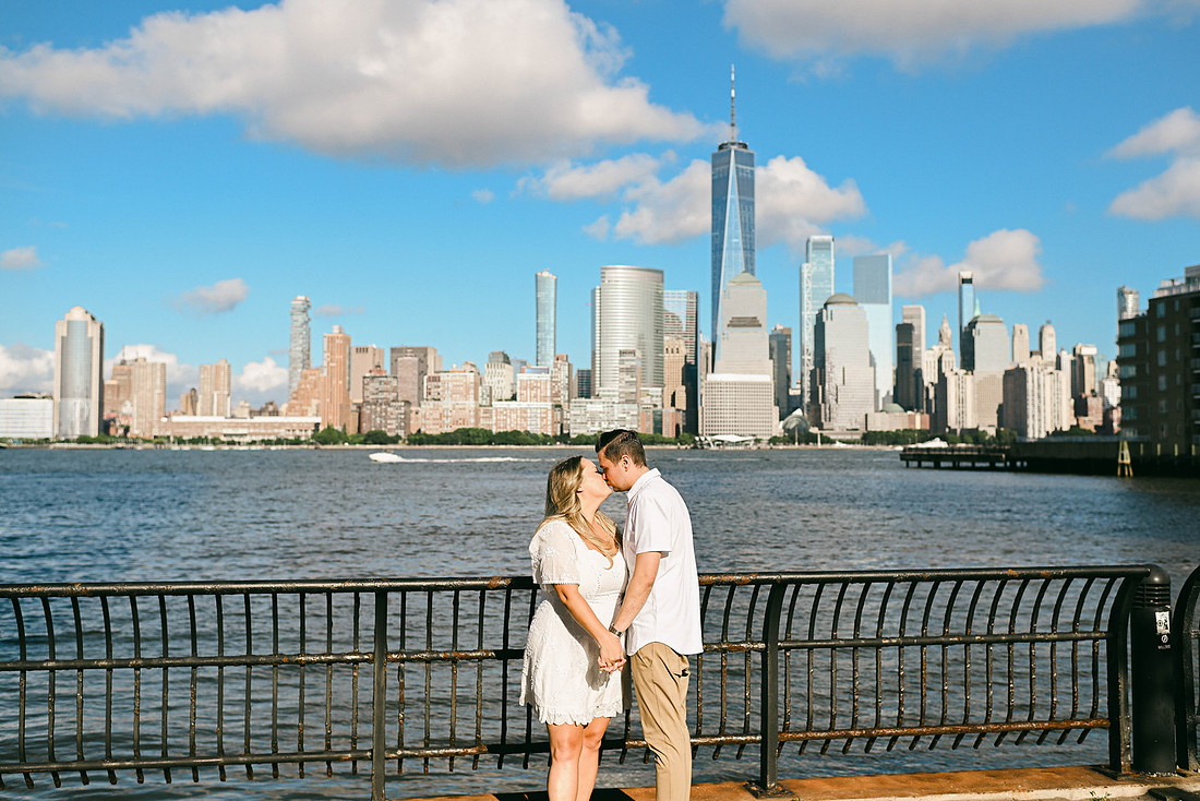 We had such a wonderful time working with Cody and Jessalynn in Jersey City for their summer engagement session! Cody and Jessalynn used to live in Jersey City and have many fond memories in the city together, so it was a fantastic choice as a location for their engagement session. We started along the waterfront, wound up at Hudson & Co. for a drink and ended at Liberty State Park. Cody and Jessalynn were so easy to talk to, and we spent the evening swapping travel stories. We can't wait for their wedding at North Shore House next May!