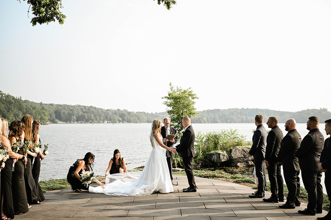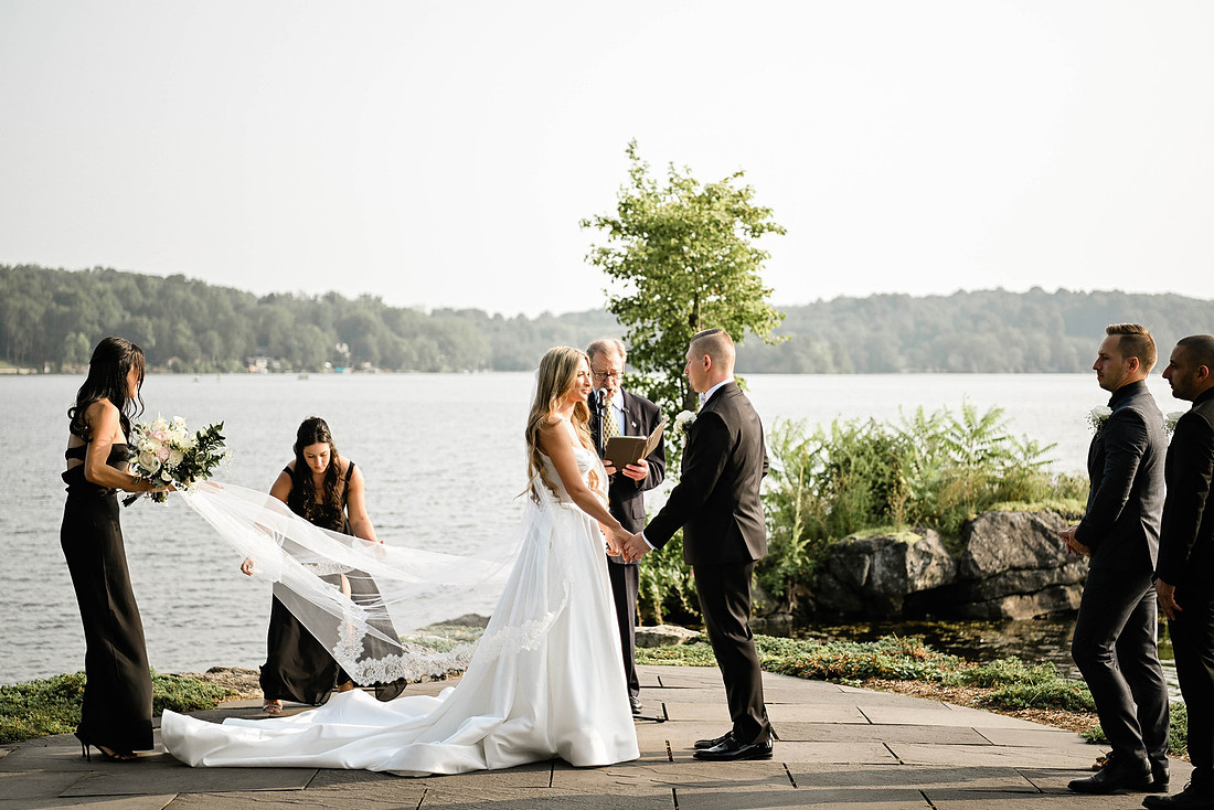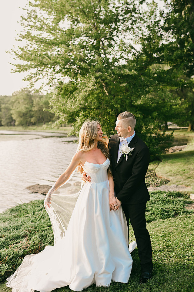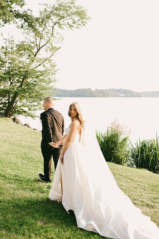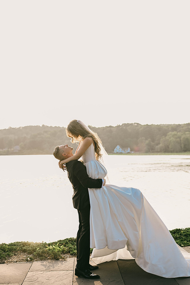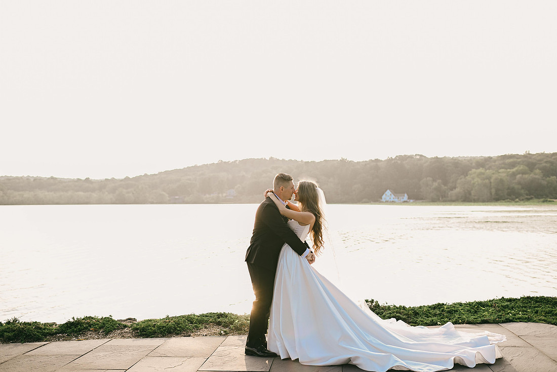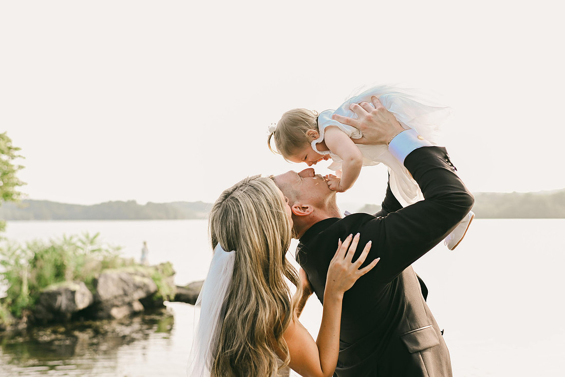 We had the best time working with Martins + Rebecca on their wedding day at North Shore House on their wedding day! Martins and Rebecca wanted an elegant yet relaxed wedding day, so they kept their guest list to around 60 people and wanted to emphasize time together and time with their closest family and friends. They had a stunning, lakeside ceremony just before sunset which led right into the most beautiful golden cocktail hour. These two were so incredibly easy to work with during their portraits, and we made sure that they got lots of photos with their adorable daughter Savannah. They ventured out onto the dock with us during blue hour where we flew the drone and got a few last minute portraits. Martins and Rebecca are the most stunning couple and were an absolute joy to work with. Enjoy their beautiful, summer, North Shore House wedding!