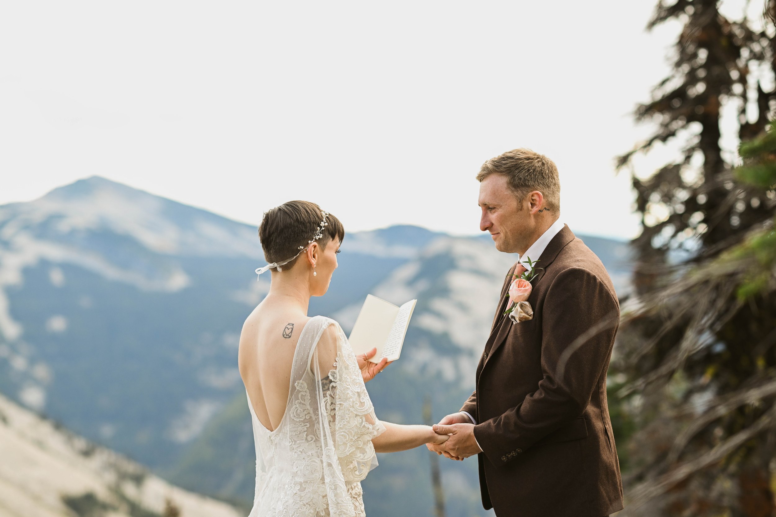They started out the day setting up and getting ready with their family and friends. We then packed up and drove up a mountain to a scenic hike Mitch and Jess had found on AllTrails. However, the appointed trailhead was not where our maps said it was going to be, so we found ourselves driving, and then driving some more as the road grew increasingly sketchy. The road did eventually dead end at the trailhead and the hike turned out to be more perfect than Mitch and Jess could have dreamed. There wasn't another soul to be found for miles. Jess and Mitch got dressed on the hike and transitioned right into a first look. The dress was perfect on Jess and Mitch was clearly stunned. They had an emotional private vow reading and we explored the wilderness area. It threatened to rain most of the morning, but it turned out to the be perfect afternoon. When we got back to the cabin, Jess had a first look with her father, followed by their outdoors ceremony, officiated by Jess's brother. Their reception was a blast, and it was the laid-back evening they were hoping for. Their wedding day was an absolute dream, and I am so grateful that they chose Jason and I to capture their big day! Enjoy their stunning, Trout Creek, Montana elopement!