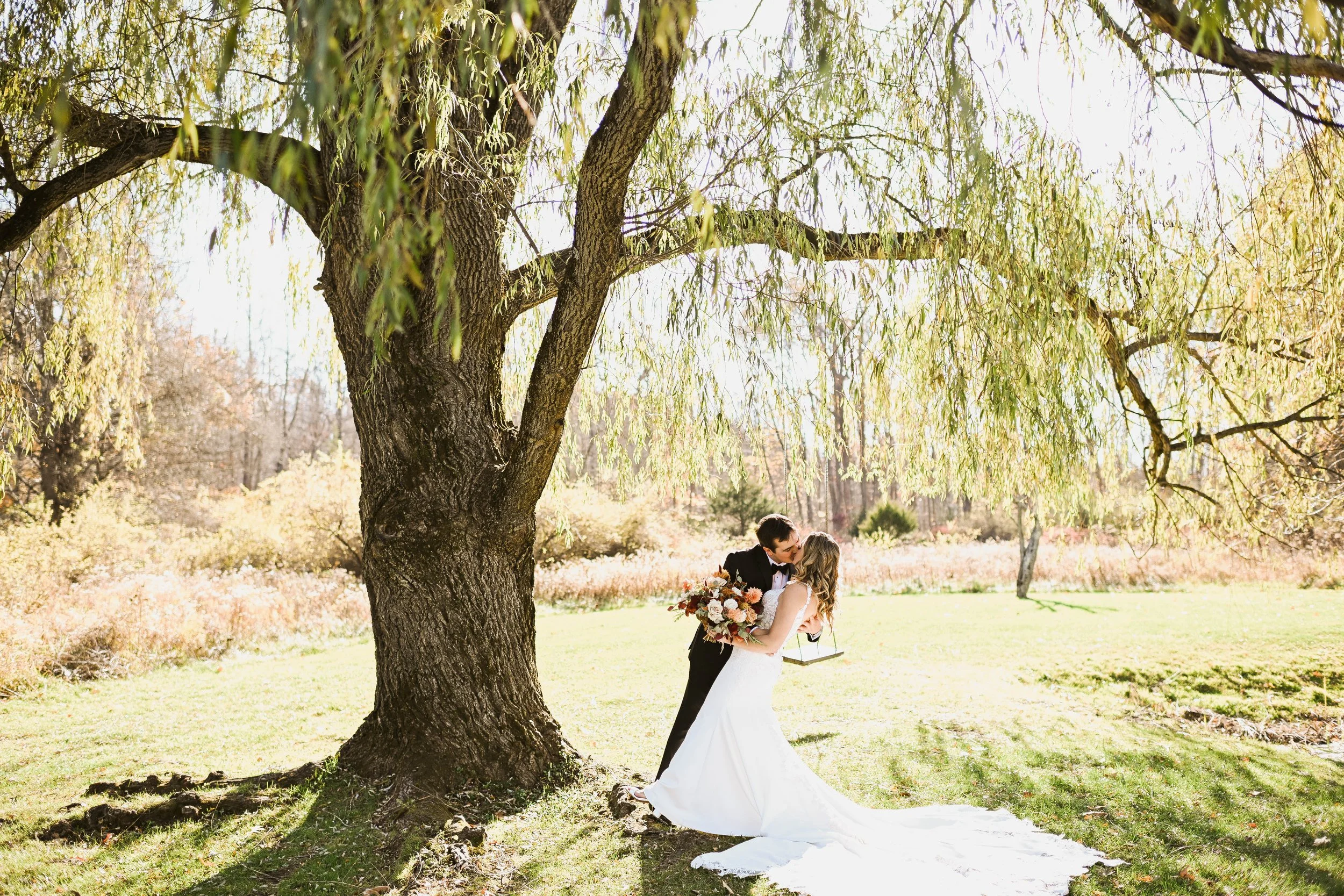 We had such a wonderful time working with Ryan + Taylor at The Barn at Perona Farms for their November wedding! Ryan and Taylor both spent the morning getting ready in the Carraige House with their bridal parties. Once Taylor was dressed, she went right into a first look with her dad and then a first look with Ryan at the willow tree. We explored the property with Ryan and Taylor, and these two were an absolute joy to work with. We were able to get all of their photos done prior to their ceremony. Right before their formal ceremony, they had an intimate Ketubah ceremony with their closest family and their bridal parties. Their formal ceremony was at dusk, and they had a stunning inter-faith ceremony celebrating both their Jewish and Christian faiths. Their reception was an absolute party. Their dance floor was packed all evening and their guests truly brought the energy. Before we left for the evening, Ryan and Taylor got a few night photos outside with us. Ryan and Taylor were our second to last wedding of 2025, and they had the perfect day. I was so grateful they chose us to capture their big day, and I'm so excited to be sharing more of this perfect Perona Farms wedding! Enjoy!